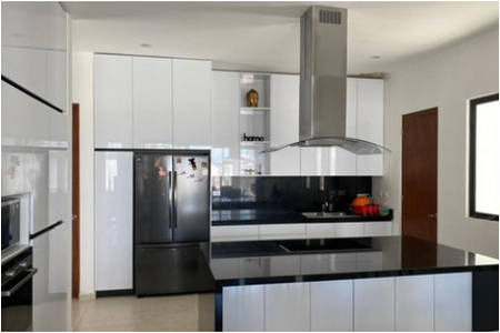 Cocina vestida al alto brillo con isla de granito