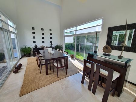 SALA, COMEDOR MUY AMPLIOS CON VISTA AL JARDIN AL IGUAL QUE LA COCINA CON DESAYUNADOR Y TERRAZA QUE DAN AL JARDIN, LA MAYORIA DE LAS AREAS DE PLANTA BAJA TIENEN VISTA AL JARDIN EXCELENTE DISEÑO CON MUCHA LUZ JARDIN CENTRAL EN PLANTA BAJA.